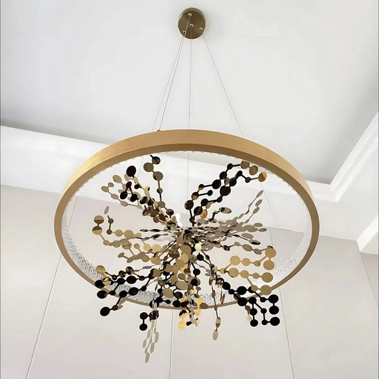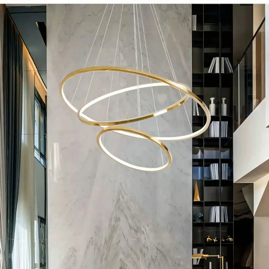 Lustre LED Salon Moderne Noir Or 3 Anneaux Suspendu Intensité Variable