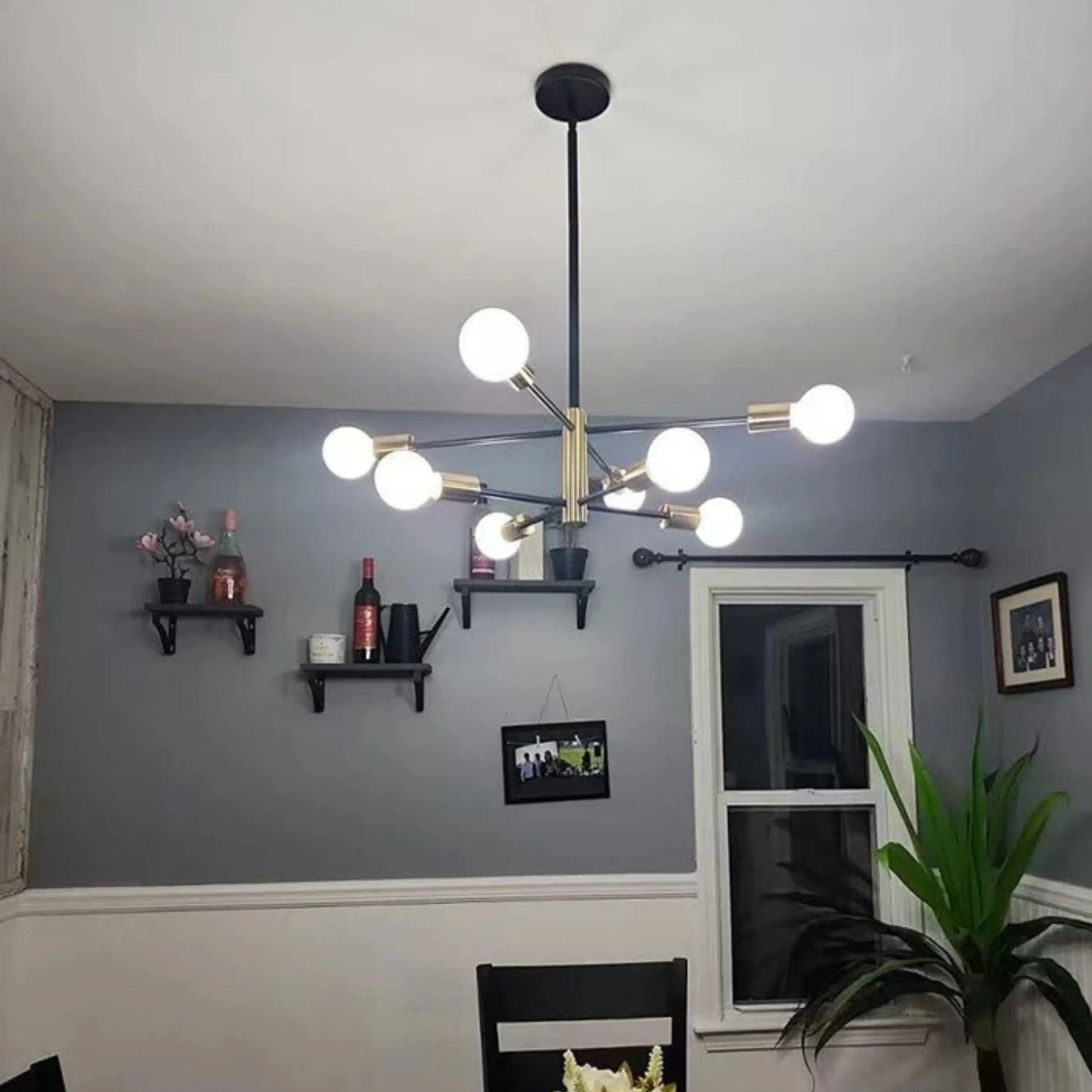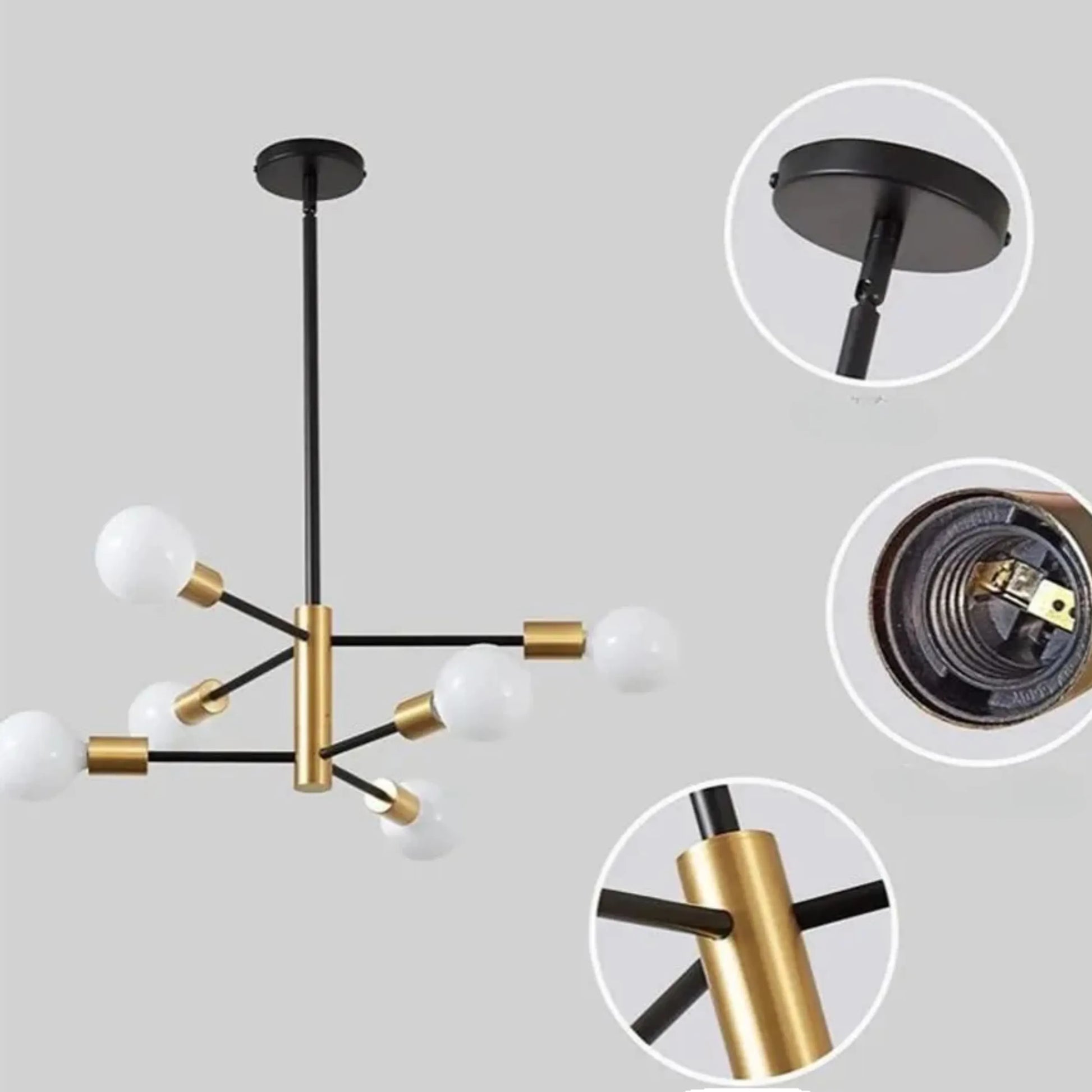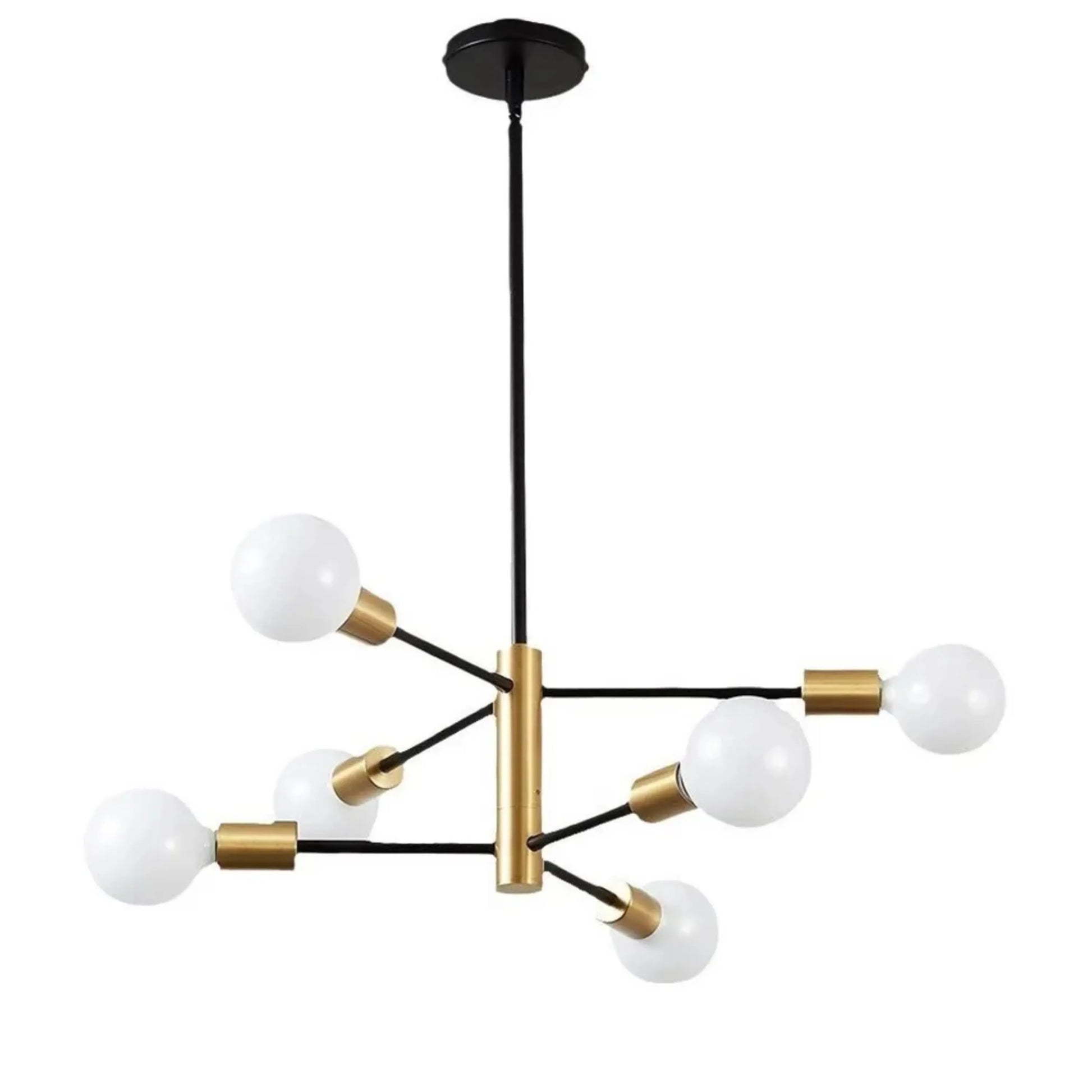 Ce lustre à boules en verre combine un design graphique et une présence sculpturale pour sublimer salon, salle à manger ou chambre. Disponible en 4, 6, 8 ou 10 têtes avec globe diffus blanc chaud et hauteur ajustable (tiges fournies), il offre une installation simple et un éclairage modulable selon la taille de la pièce.