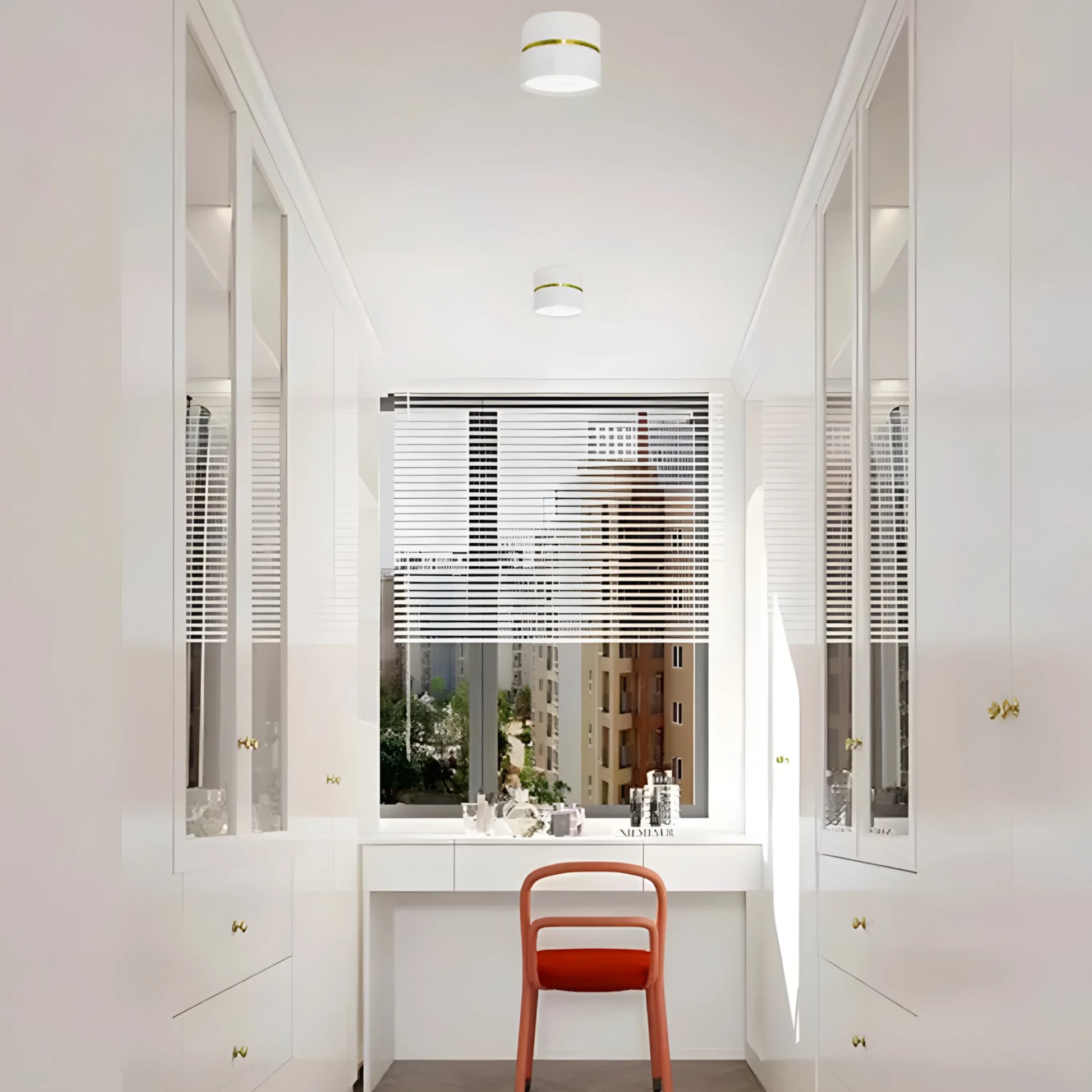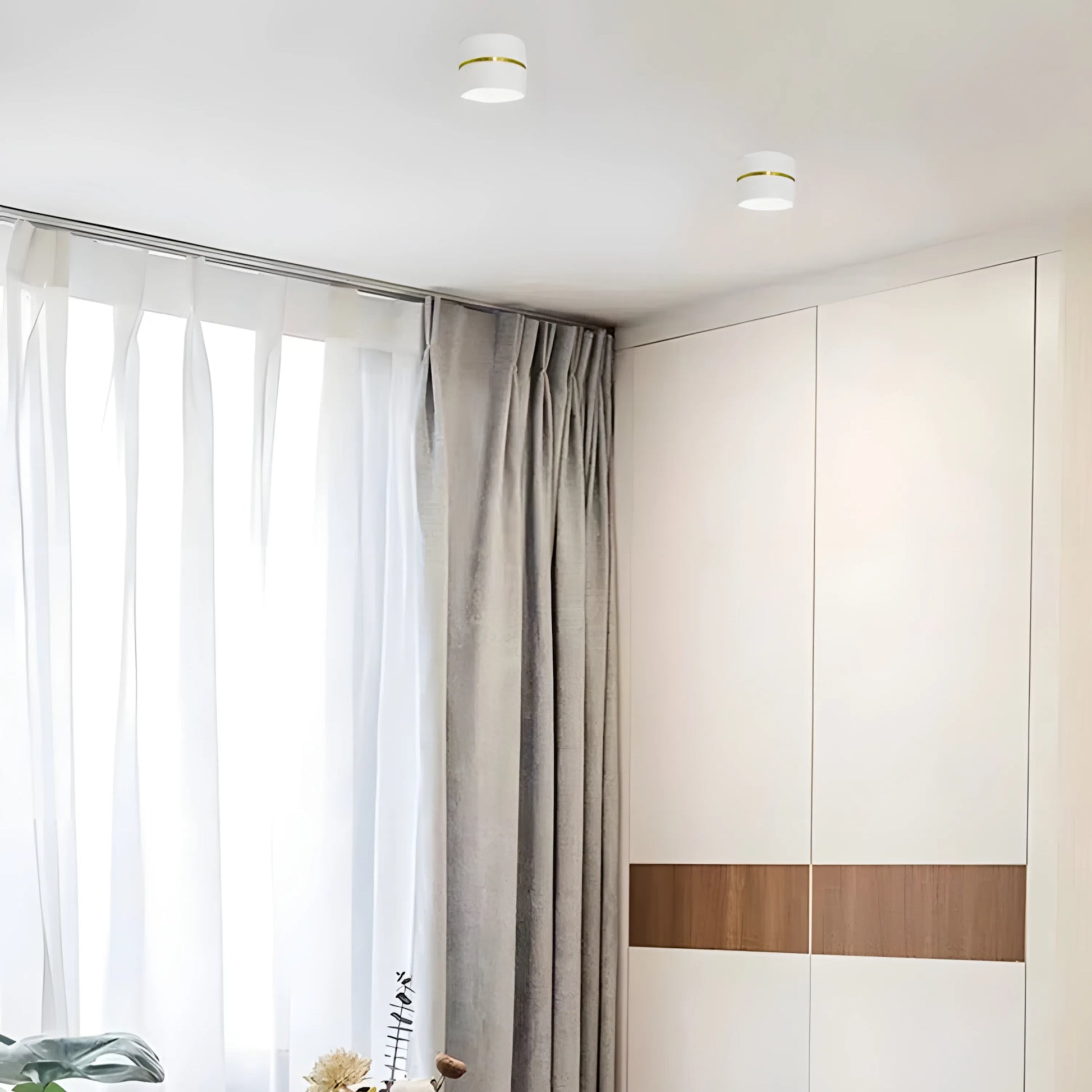 Ce plafonnier LED en aluminium associe un design compact et une touche dorée élégante pour sublimer discrètement vos espaces de passage. Facile à installer et proposé en plusieurs couleurs et températures.